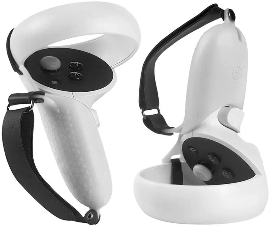 Чёрные силиконовые чехлы для Oculus Touch надежно защитят ваши контроллеры от потертостей, царапин и прочих повреждений. А противоскользящий материал и ремешки на липучках гарантируют дополнительную защиту контроллеров от падений.