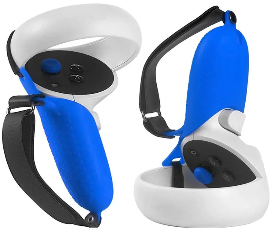 Чёрные силиконовые чехлы для Oculus Touch надежно защитят ваши контроллеры от потертостей, царапин и прочих повреждений. А противоскользящий материал и ремешки на липучках гарантируют дополнительную защиту контроллеров от падений.