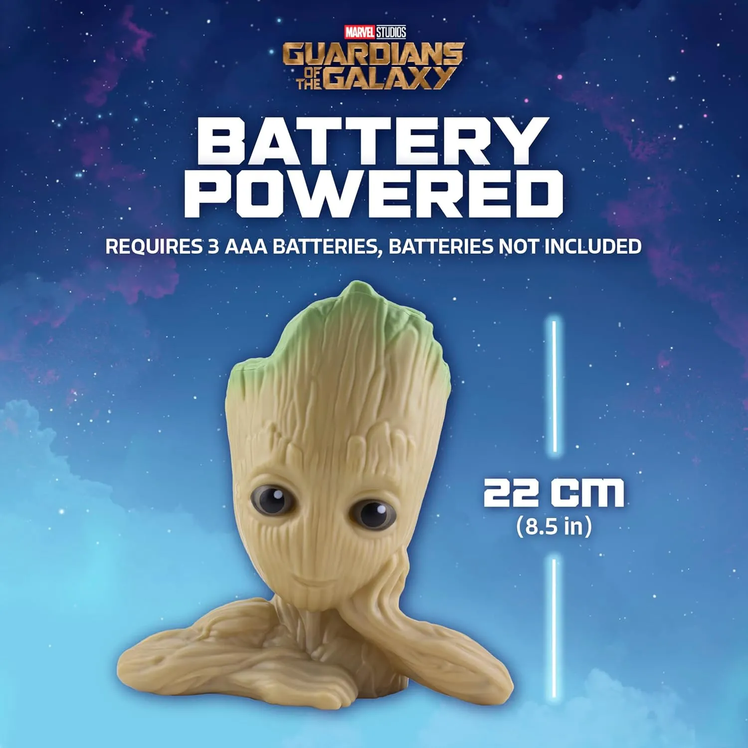 2. Декоративное освещение: Для поклонников фильмов "Стражи Галактики" светильник в виде Грута станет великолепным дополнением к вашей коллекции. Размеры: 9,4 x 6,6 см. Требуются 3 батарейки AAA (не входят в комплект).