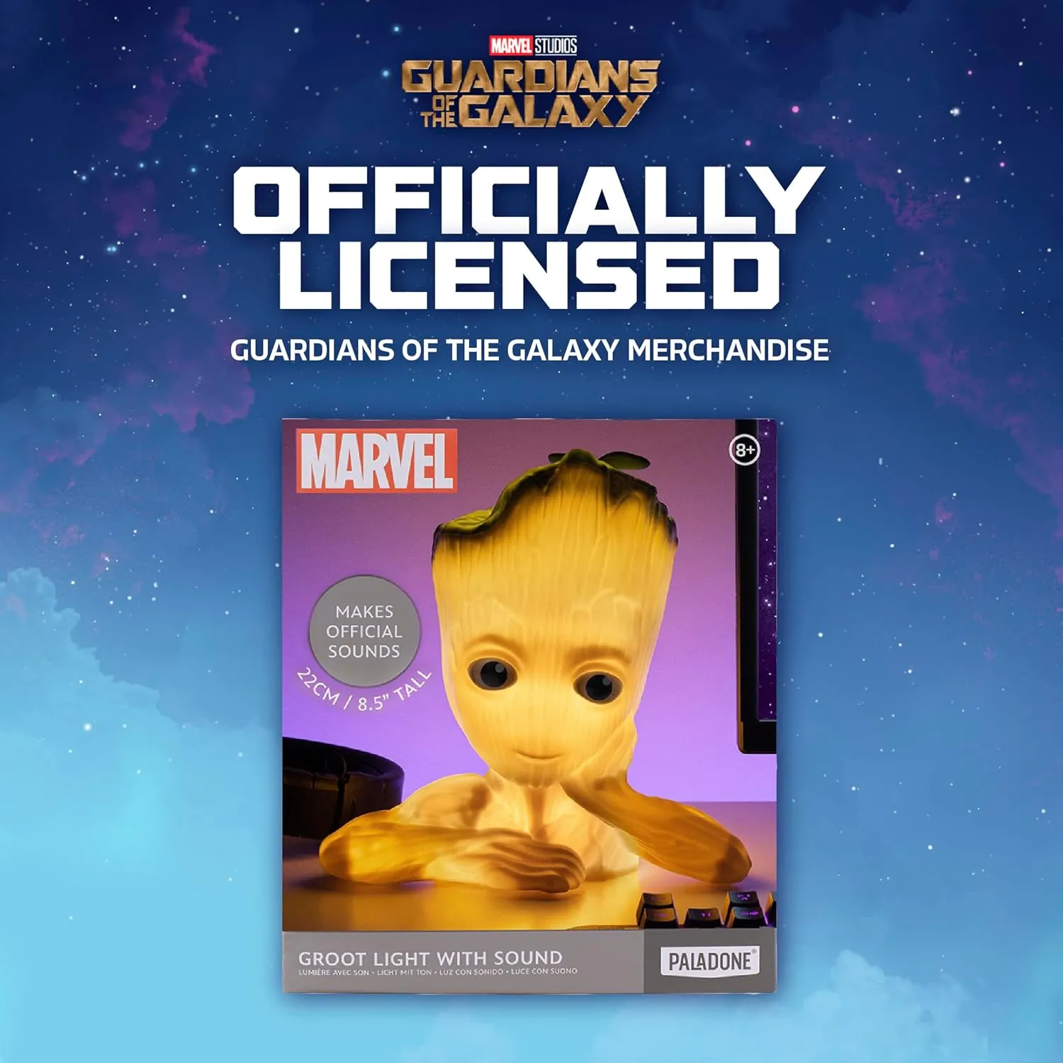 1. Я Грут: Преобразите свой просторный зал, игровую комнату или спальню с помощью светильника в виде Грута, который излучает официальные звуки. Этот любимый персонаж поможет создать атмосферу безопасности и уюта.