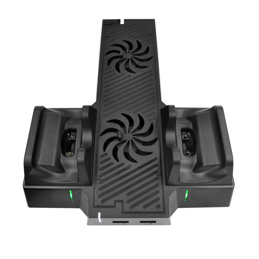 Подставка для установки консоли Xbox One X в вертикальное положение. Оснащена функцией охлаждения, зарядной станцией и подставкой под игры.