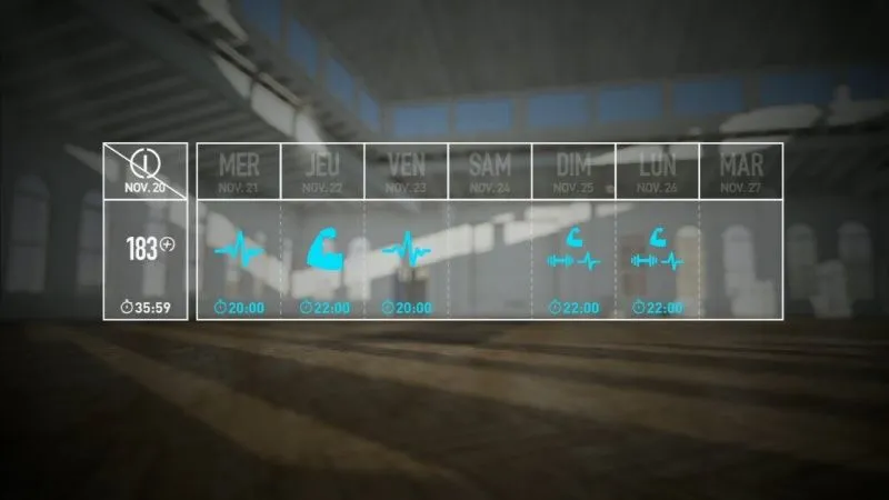 * Динамический план упражнений выстраивается вокруг целей, установленных пользователем, и меняется по мере тренировок.