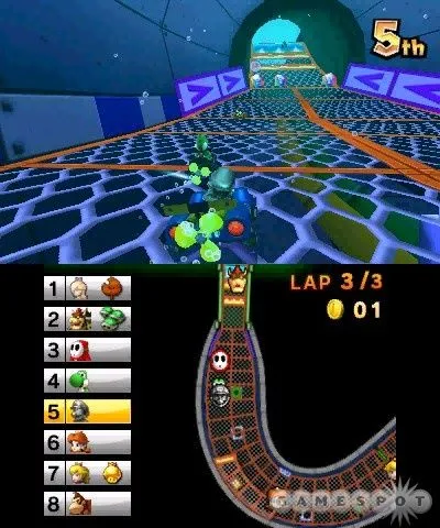 Противников можно сталкивать в пропасти и в кипящую лаву, а бонусы становятся грозным оружием – вынесите лидера летающим черепаховым панцирем, скормите гонщику гриб и ускорьтесь! Станьте радужным и сметайте все на своем пути! С Mario Kart 7 – это сказочный мультиплеер!