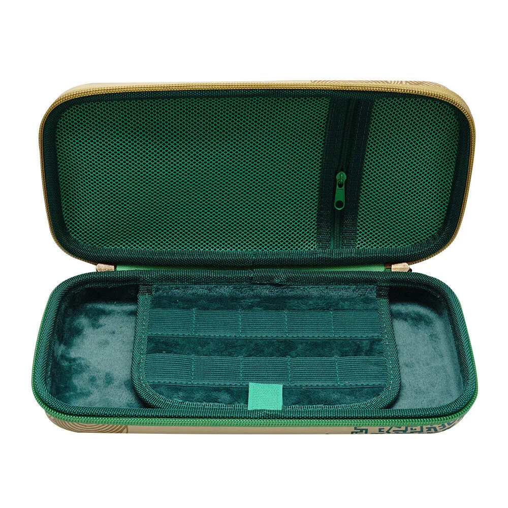 Наслаждайтесь безопасными и удобными игровыми сессиями с нашим чехлом для Nintendo Switch. Он компактен, но изготовлен из ударопрочного материала, который защитит вашу консоль от повреждений. Наш продуманный дизайн включает в себя небольшой карман под молнией для хранения мелких аксессуаров и отдельный кармашек со слотами для игровых картриджей. Принт Zelda добавляет немного стиля к вашей игровой коллекции. Этот чехол совместим с Nintendo Switch/OLED и поставляется в OEM-упаковке в целлофановом пакете. Не пропустите возможность сделать свою игровую жизнь более безопасной и удобной с нашим чехлом для Nintendo Switch.