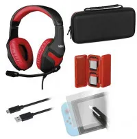 В комплекте: гарнитура Gaming Switch, чехол для переноски, чехол для хранения 4 игровых картриджей, кабель USB - USB C длиной 1,8 м, защитное стекло.