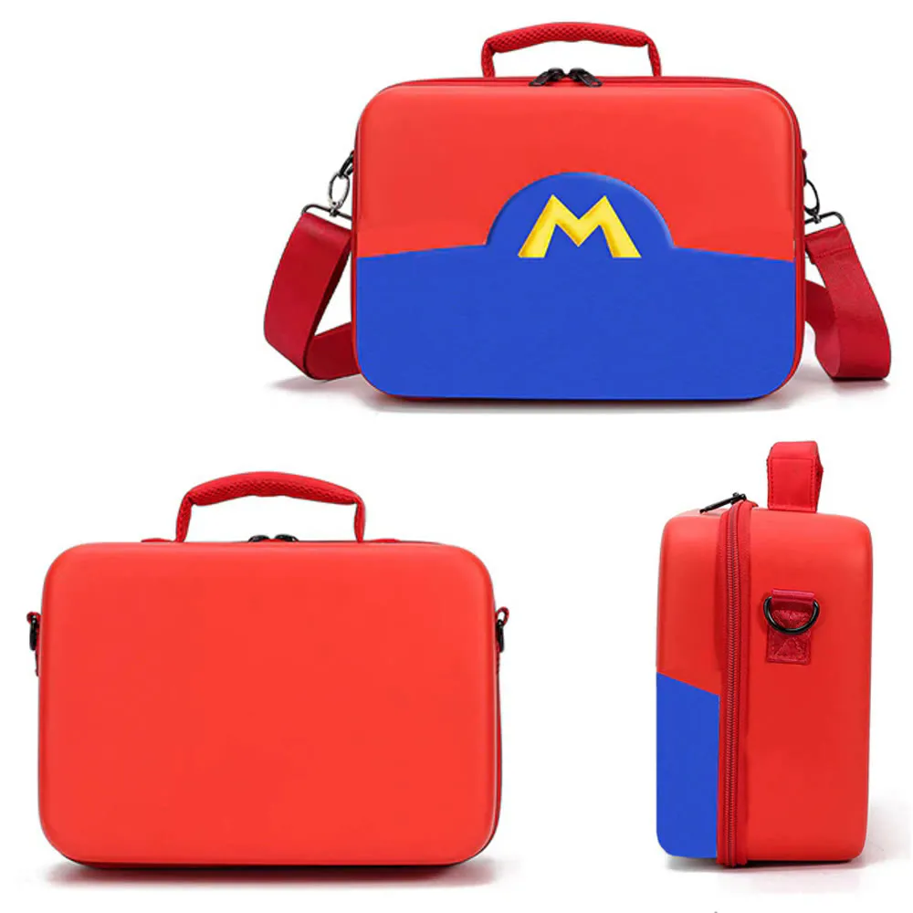 Сумка изготовлена из водонепроницаемых и ударостойких материалов, что обеспечивает надежную защиту Nintendo Switch/ Nintendo Switch OLED от любых механических повреждений и влаги. Идеально подходит для безопасного хранения или переноски не только самой консоли, но и всех сопутствующих аксессуаров. Внутри сумки с одной стороны имеются углубления под приставку, держатель Joy-Con, док-станцию, адаптер питания, ремешки Joy-Con и другие необходимые аксессуары. В другой части расположен большой карман под молнией для хранения мелких аксессуаров и отдельный кармашек с 14 слотами для игровых картриджей.