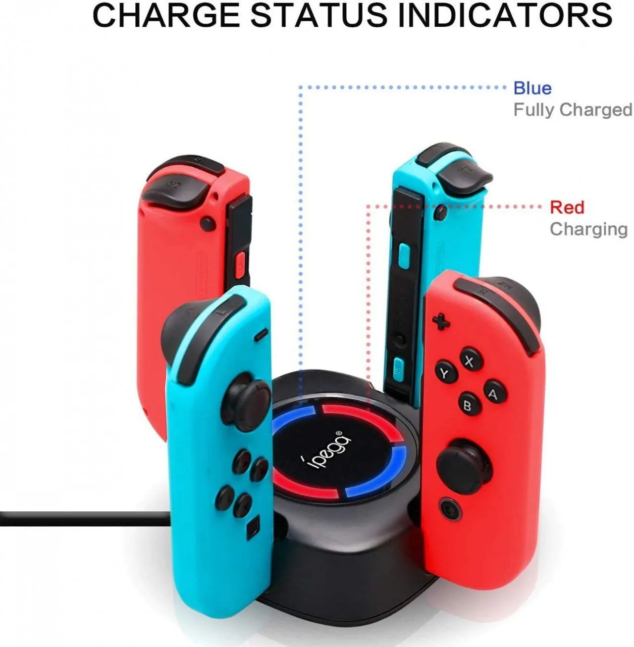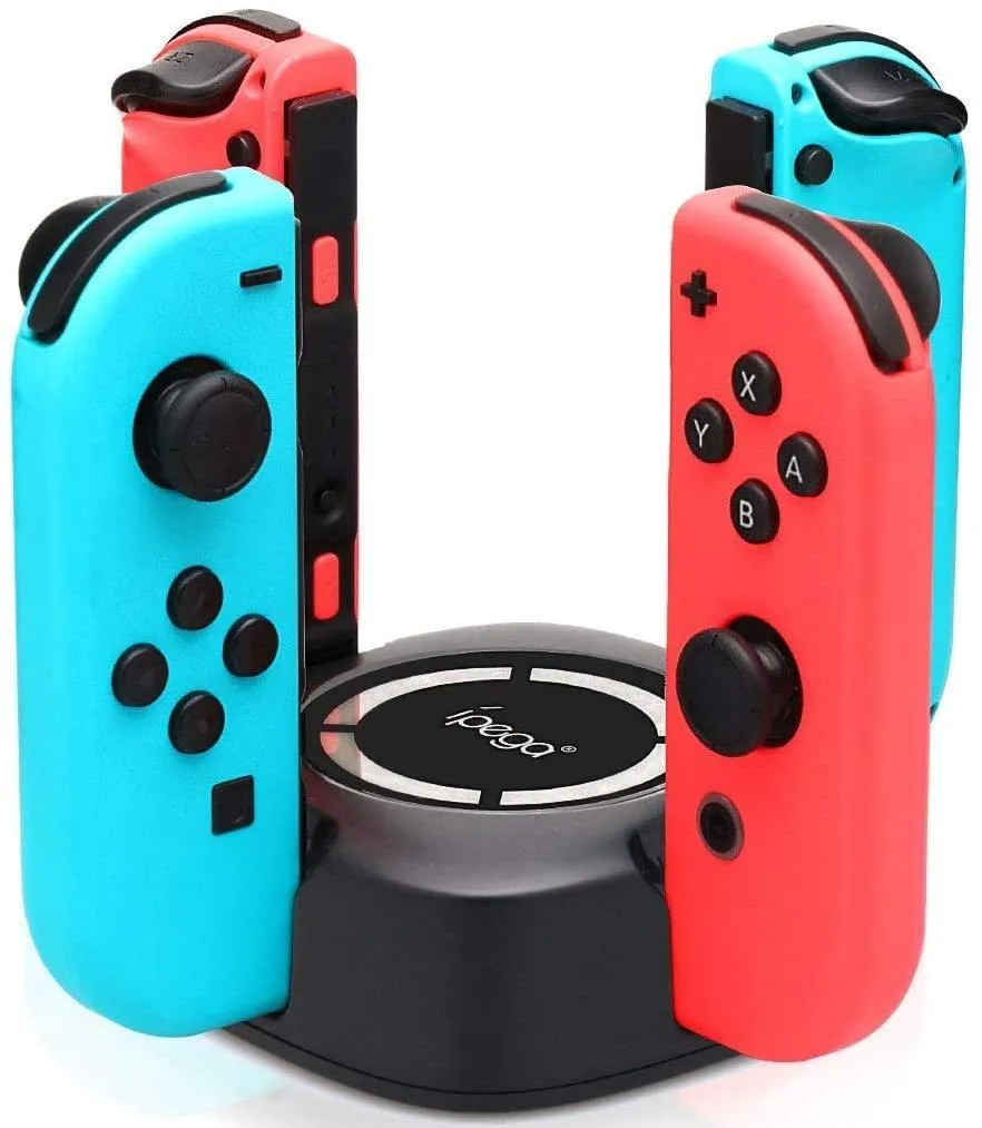 Зарядная станция или подставка с зарядкой для джойстиков разработана специально для консоли Nintendo Switch. Станция позволяет одновременно разместить и заряжать до четырех контроллеров Joy-Con Nintendo. Питание самой зарядной станции осуществляется через порт USB вашего персонального компьютера или AC адаптера.