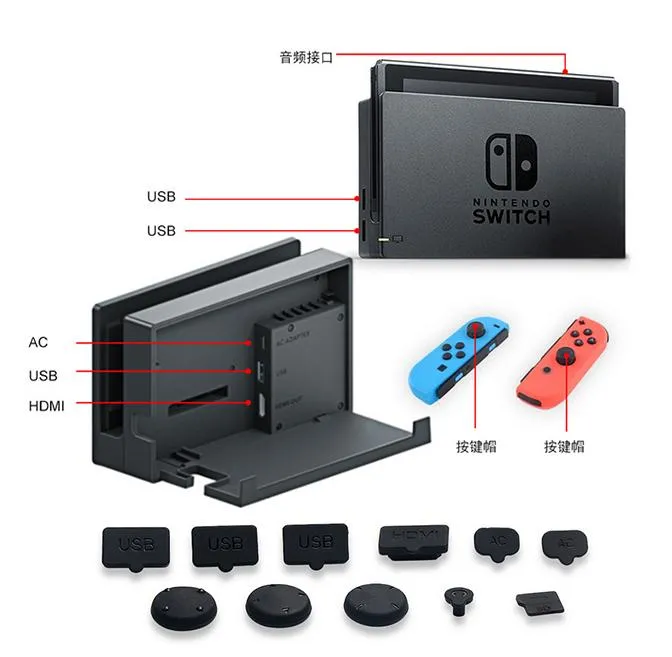 * Силиконовые заглушки для всех разъемов Nintendo Switch и док-станции.