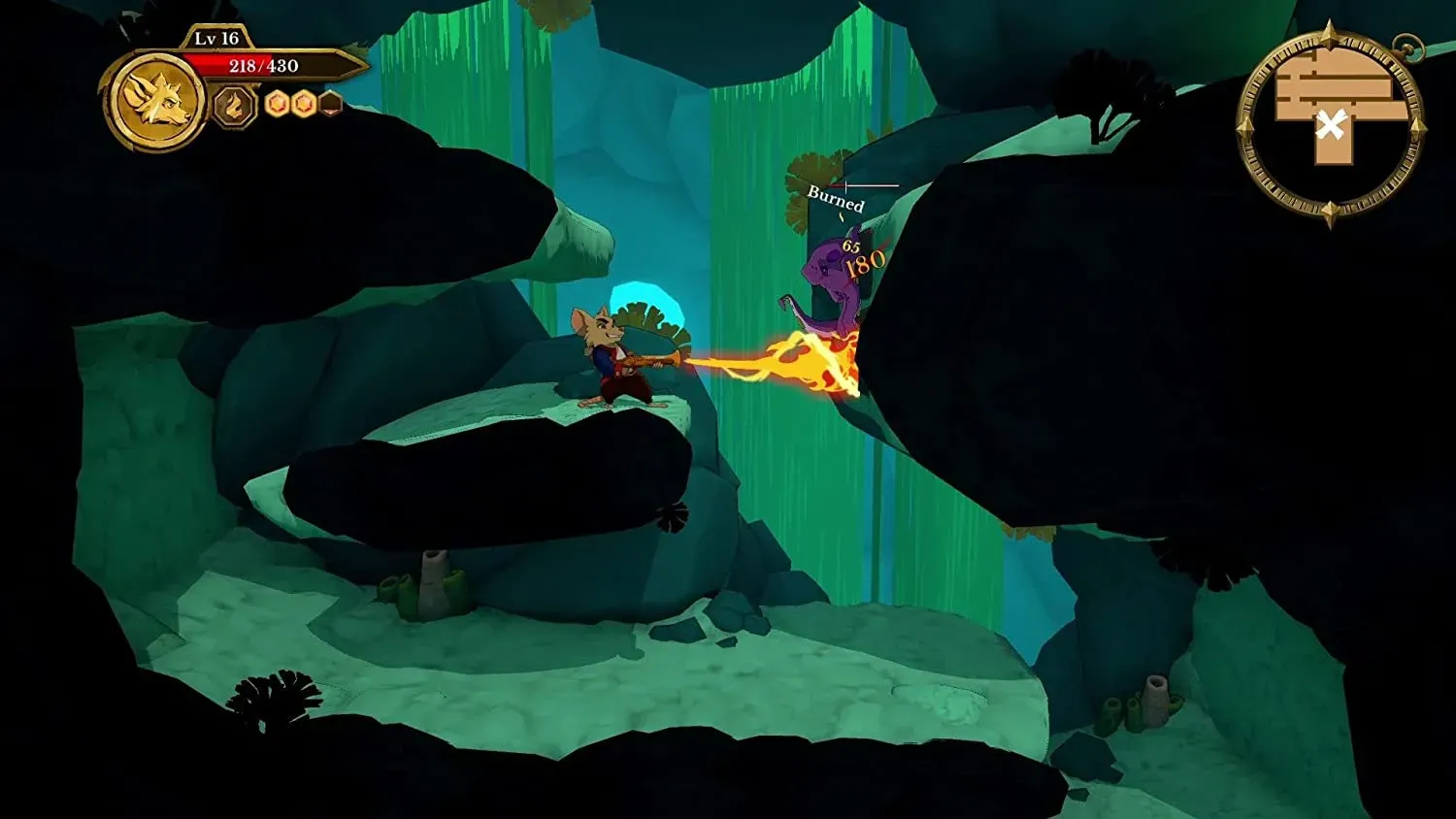 * Великолепная графика и анимация. Чудесная 2D-анимация, созданная вручную, делает персонажей игры по-настоящему живыми. Источником вдохновения для художников послужили классические мультфильмы и игры золотой эпохи 2D-платформеров. Анимация органично вписывается в детально проработанную 3D-среду, а свет и тени создают ощущение псевдотрехмерности, что производит невероятное впечатление.
