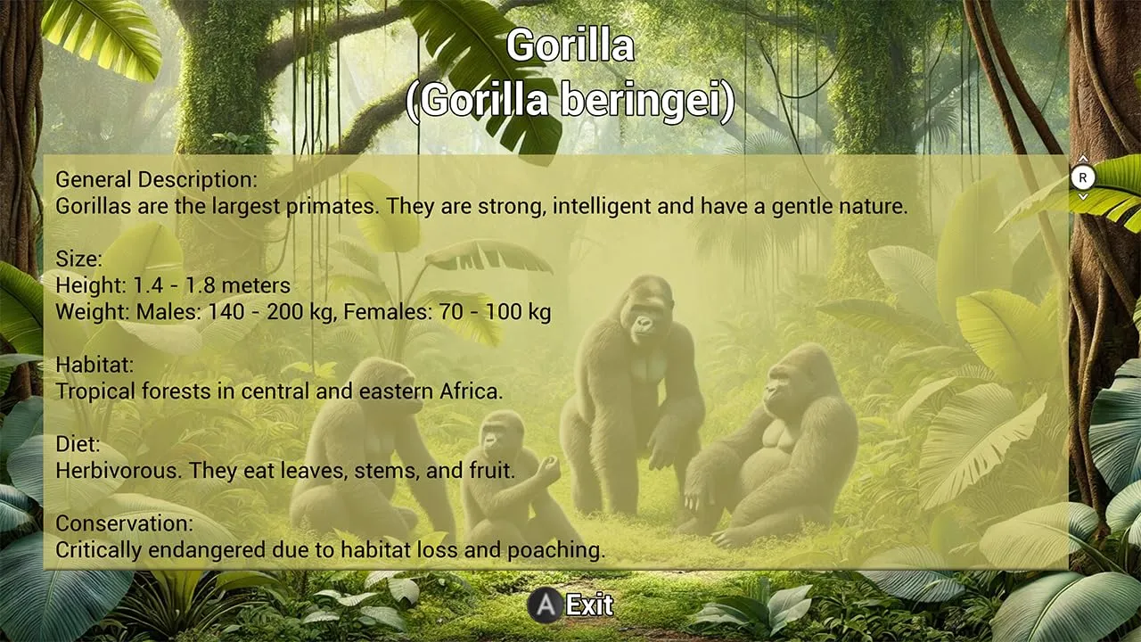 - Разнообразие животных: Познакомьтесь с обитателями зоопарка, включая львов, слонов, горилл, жирафов, зебр, бегемотов, крокодилов, тигров, белых медведей, пингвинов, овец и коз.