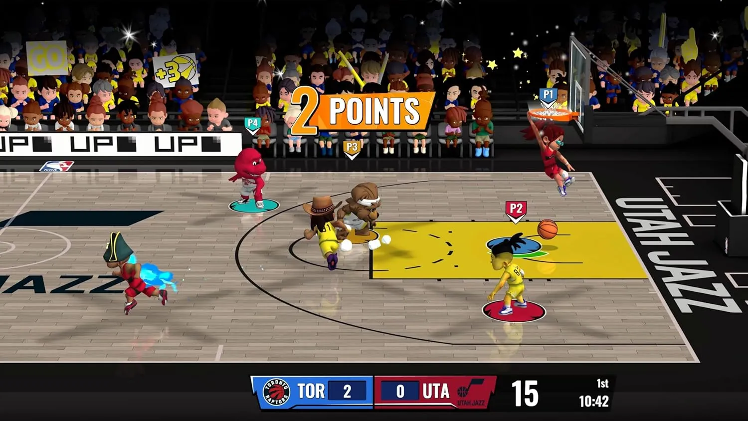 Готовы выйти на площадку и стать частью своей любимой команды? Выберите одну из 30 команд НБА, включая легендарные Бостон Селтикс, Чикаго Буллз, Нью-Йорк Никс, Голден Стэйт Уорриорз, Лос-Анджелес Лейкерс и Денвер Наггетс. С кем вы будете вести мяч к победе? Почувствуйте поддержку своих болельщиков и найдите своего талисмана. Сможете ли вы обойти баззер?