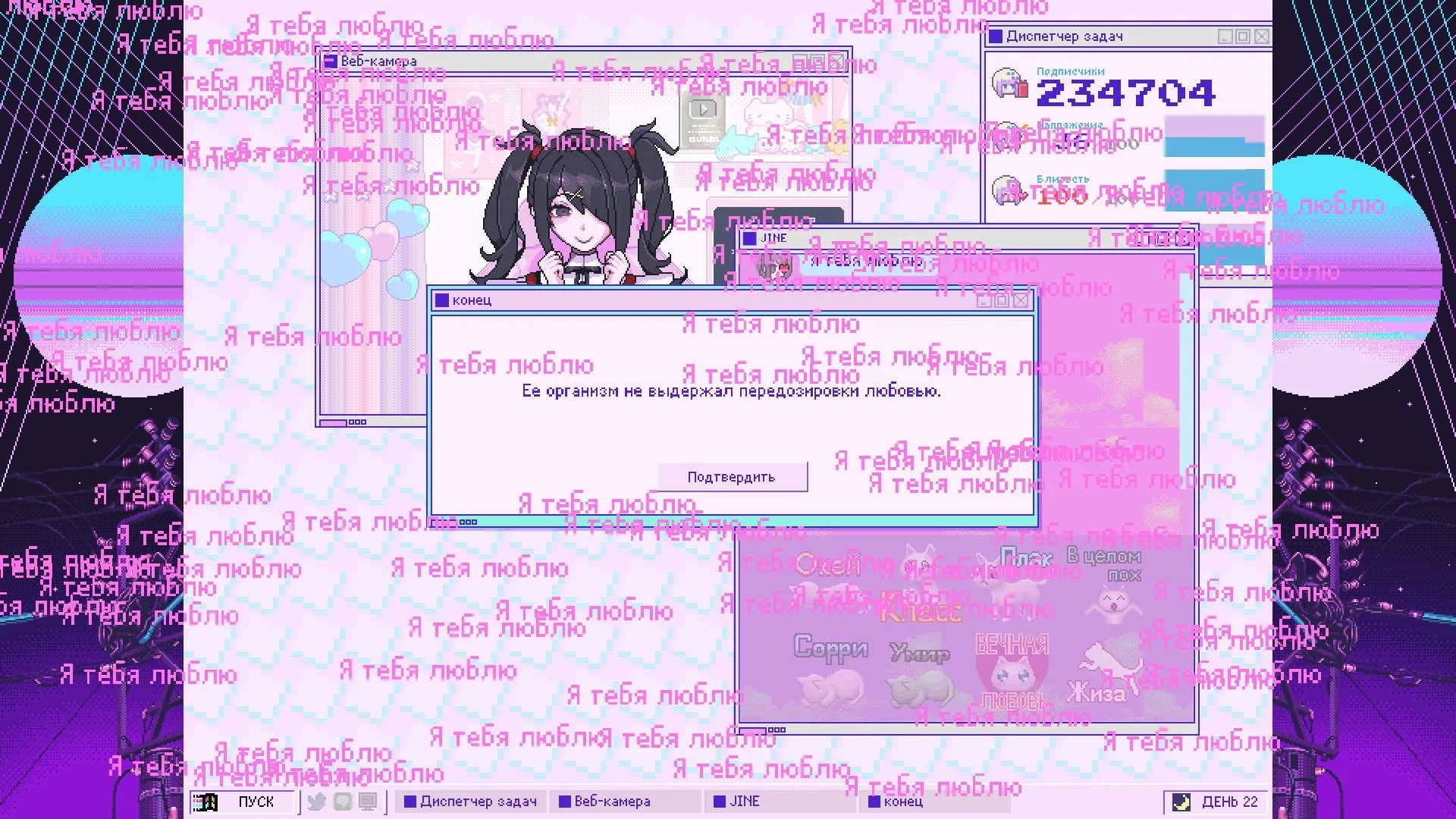 Needy Streamer Overload — это захватывающий визуальный роман в жанре приключений, выпущенный в 2022 году японским разработчиком Xemono и изданный компанией WSS Playground. В этой игре вы выступаете в роли менеджера стримера, помогая молодой девушке достичь заветной цели — собрать миллион подписчиков всего за месяц. Изначально игра была известна как Needy Girl Overdose, но в ноябре 2021 года название изменили для западного релиза, сохранив оригинальное название в Японии.