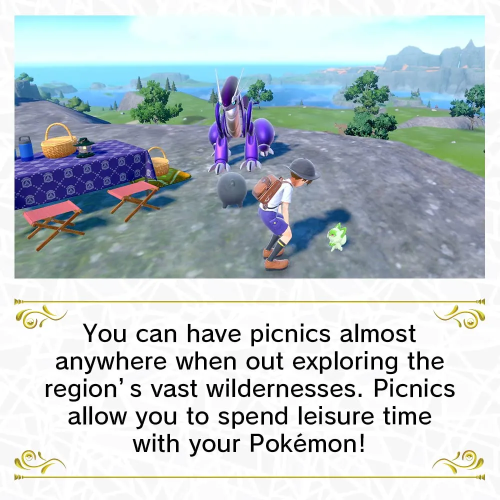 Добро пожаловать в регион Paldea, безграничные просторы которого усеяны озерами, пустынями, высокими скалами и опасными горными грядами. Ищите свои приключения так, как сами захотите — вы можете свободно выбирать, какую из трех эпических сюжетных линий проходить, и сражаться в Гимах в любом порядке!
