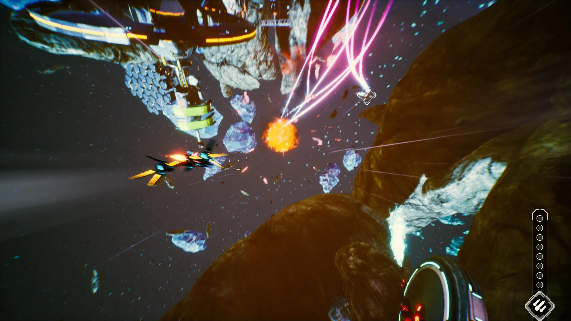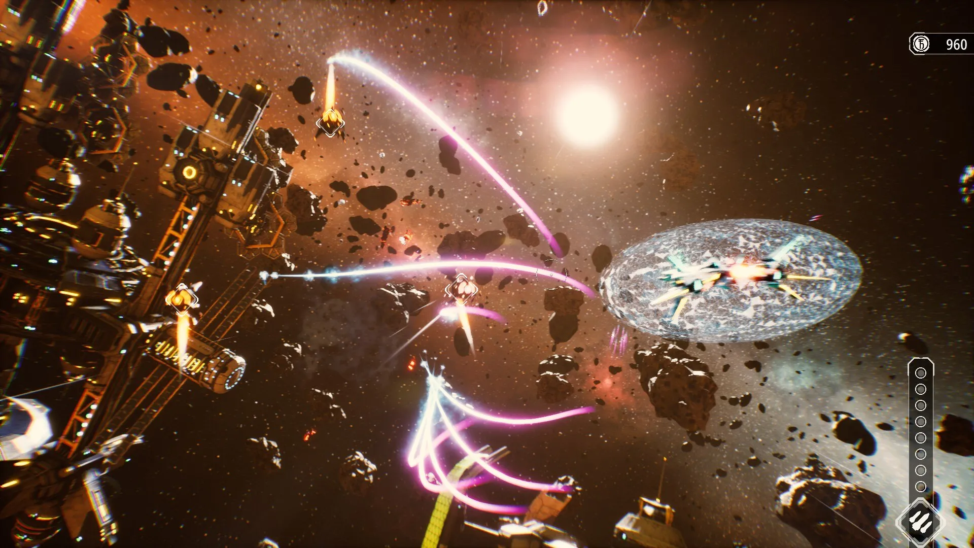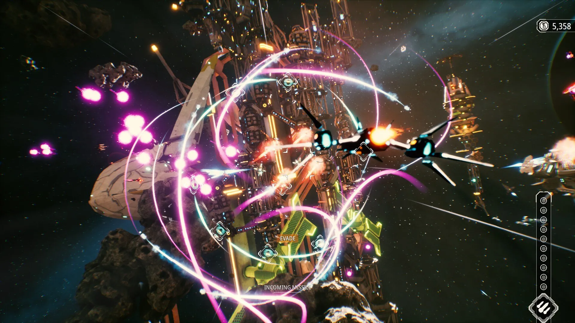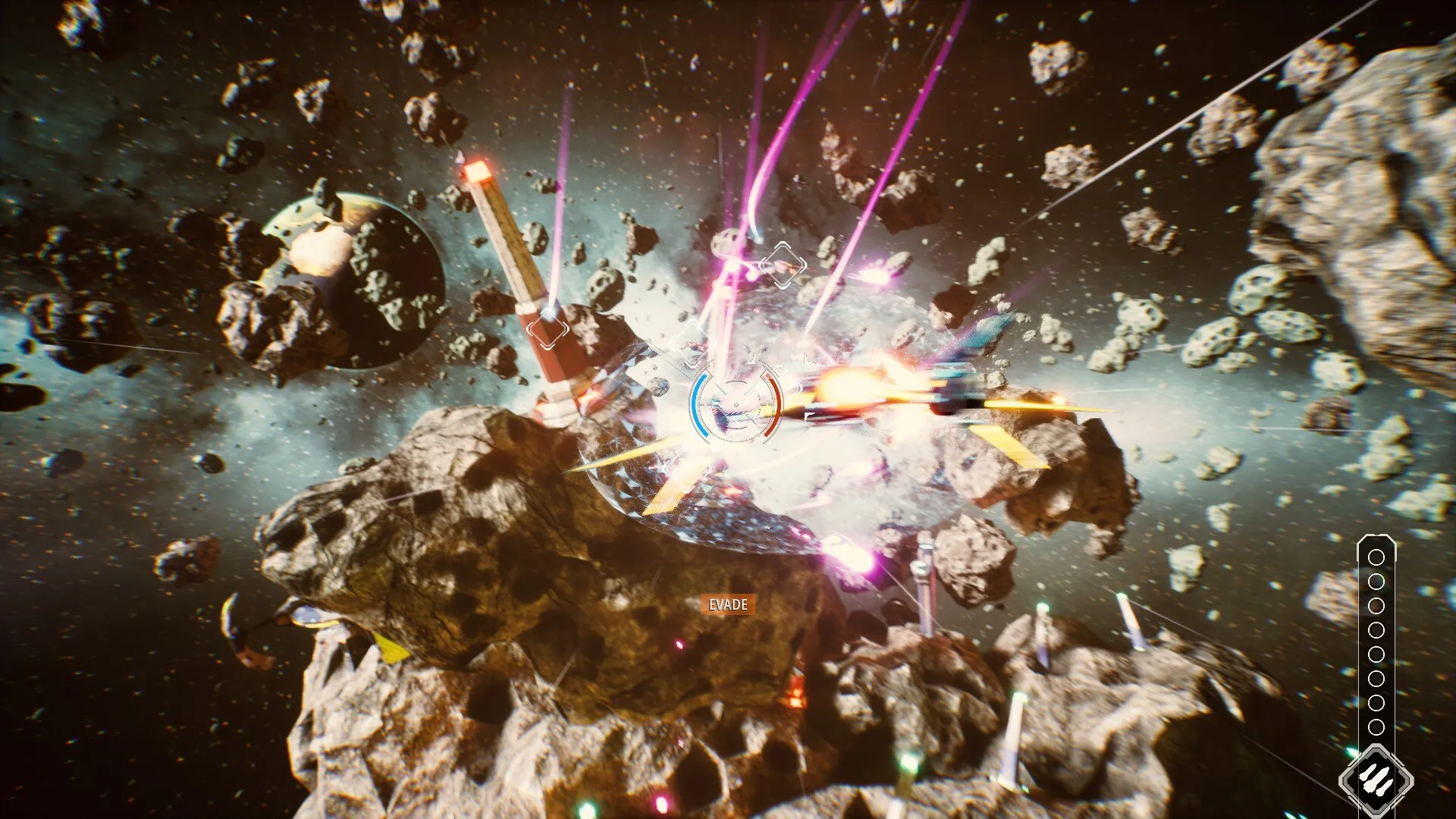 Пролетайте сквозь гигантские астероидные рудники, сбивайте беспилотники и истребители мятежников, выполняйте виражи, уходя от огня противника, обрушивайте на цель сверхмощные ракетные залпы! И, конечно же, гоняйте на головокружительных скоростях с другими пилотами и космическими мусорщиками — просто так, веселья ради.