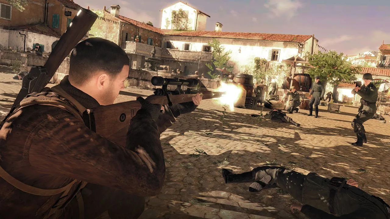 * Увлекательный сюжет о Второй мировой войне и непревзойдённая свобода снайперских действий на многих картах, размер которых в несколько раз превышает карты Sniper Elite 3
