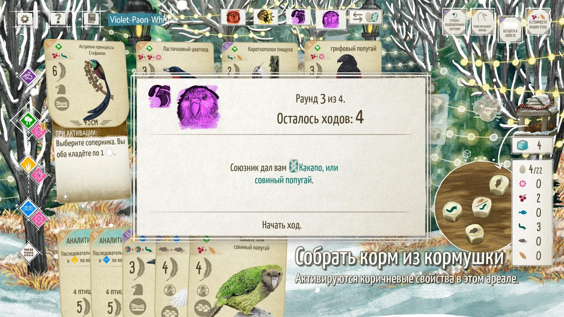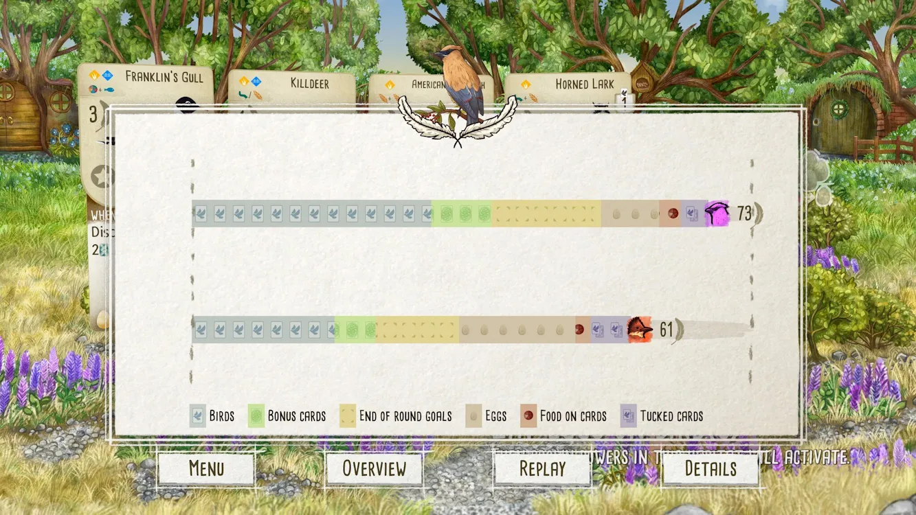 - Расслабляющая карточная стратегия, где ваша цель — привлечь лучших птиц.