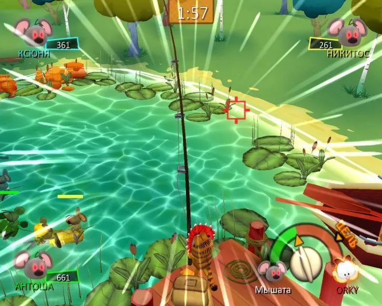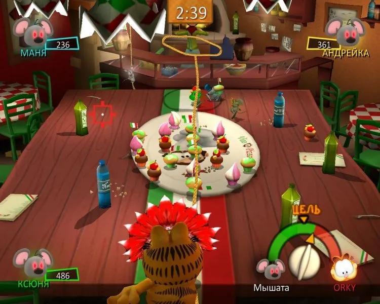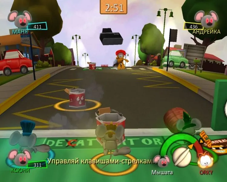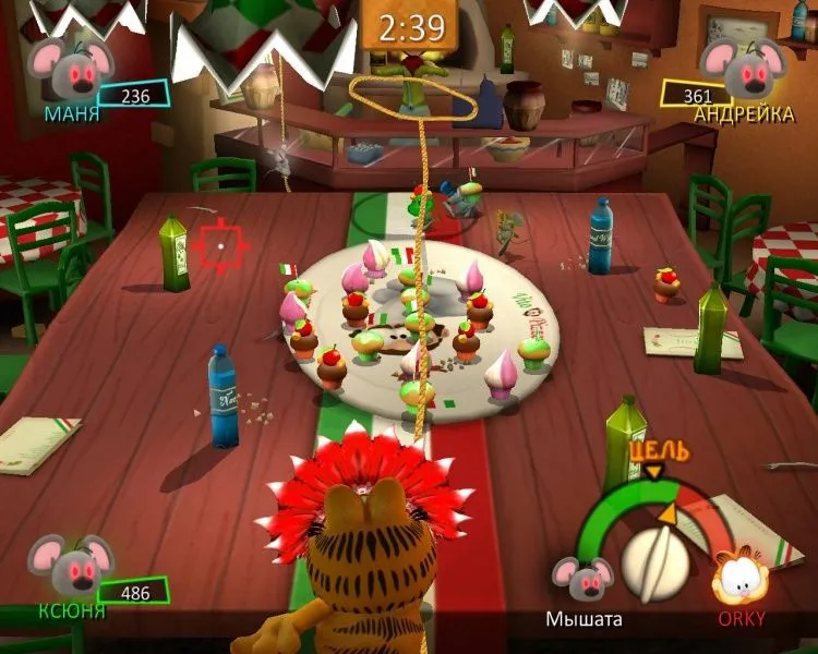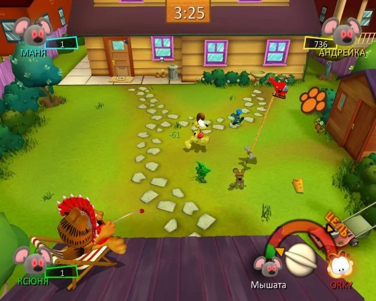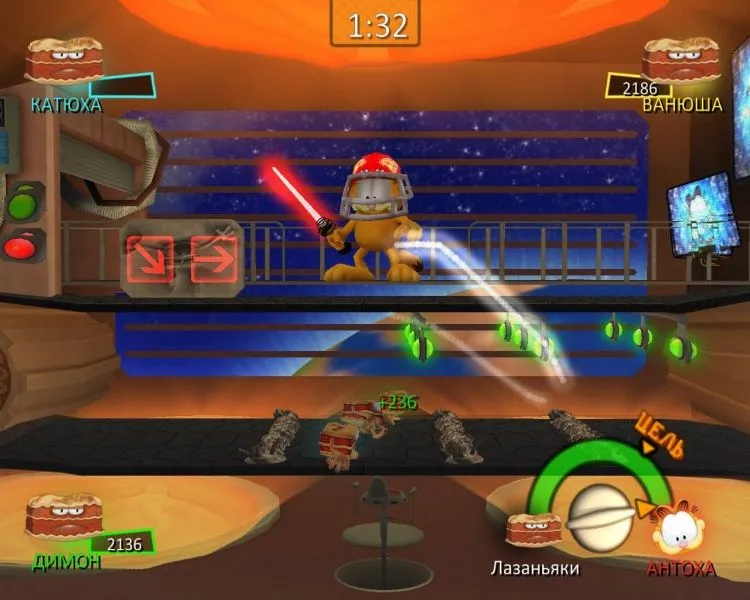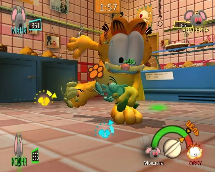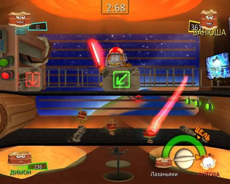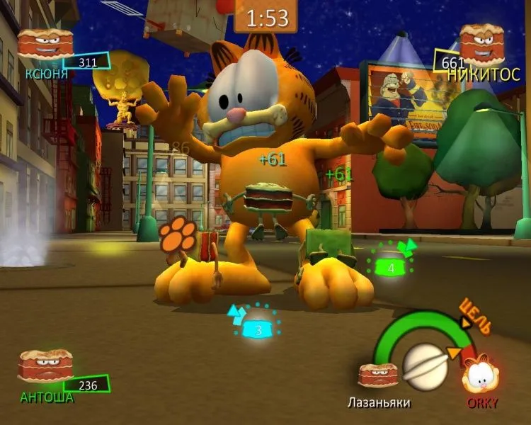 Знаменитый кот Гарфилд снова угодил в переделку — на этот раз в город вторглись инопланетные лазаньяки! Мало того! С помощью своего мощного гипнотрона лазаньяки загипнотизировали земных мышей, и те устроили повсюду настоящий хаос. Придется рыжему толстяку привести грызунов в чувство, а потом преподать урок главным виновникам мышиного беспредела. Ох, и повеселится же Гарфилд! Он будет виртуозно орудовать и сковородкой, и лазерным мечом; угощать пиццей прожорливых посетителей ресторана; охотиться за мышами с воздушным шаром; сбрасывать лазаньяков со звездолета — в общем, проводить время так, как не способен больше ни один кот в мире! Особенности игры
