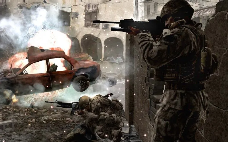 * НЕВЕРОЯТНАЯ ГРАФИКА. Сочетание последних технологий и отличного дизайна выводит сражения на новый уровень. Call of Duty 4 — будущее жанра. Клубящаяся пыль, разлетающиеся во все стороны осколки, реалистичные модели персонажей, тщательно прорисованные до самого горизонта пейзажи — все это создает небывалый эффект присутствия.