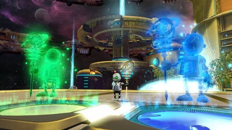 * Два колоритных героя. Вы примите участие в захватывающих приключениях от лица как Рэтчета, так и Кланка. У каждого персонажа свои особенности. Так, у Рэтчета появились ботинки-скороходы (Hoverboots), с помощью которых он быстрее бегает и выше прыгает, а Кланк научился воздействовать на время.