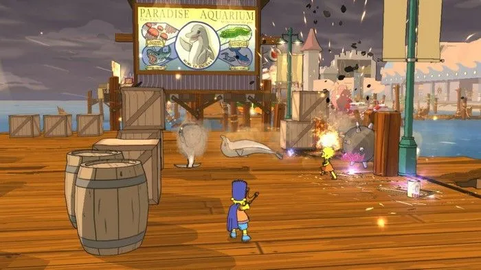 * Настоящие Симпсоны. Каждый персонаж, каждый домик или деревце в игре выглядит точно так, как в мультфильме. Современные технологии буквально оживили телешоу, позволив вам лично принимать в нем участие.