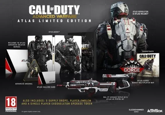 Влиятельная частная военная кампания «Атлас» работает под руководством Джонатана Айронса, одного из самых влиятельных людей в далеком 2054 году. Впечатления об этой корпорации нашли отражение в комплектации издания. В его состав войдут карта для многопользовательской игры Atlas Gorge, коллекционная металлическая упаковка, саундтрек, руководство Welcome to Atlas: Advanced Soldier Manual и набор дополнительных материалов Atlas – тематический боевой экзоскелет, оружие и другой игровой контент.