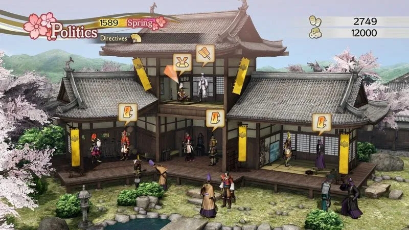 Процесс управления страной разделен на две фазы – политическую и военную, он выполнен гораздо интересней, чем в Dynasty Warriors 8: Empires. Чем больше сфера нашего влияния, тем больше различных действий мы можем за совершить за ход. Захватывая новые земли и увеличивая количество палат магистратов в замке, мы делаем наш клан сильнее. При этом советы даёт не только наш стратег, но и сами магистраты, но в отличии от стратега, который стремится развиваться во всех направлениях, магистраты тянут одеяло на себя, предлагая те действия, которые наиболее актуальны для их палаты. Военные стремятся увеличить количество войск, заполучить в своё распоряжение новые тактические приёмы или предлагают улучшить оружие офицеров. В то же время дипломатическая палата рассуждает о необходимости налаживания контактов с другими кланами или аргументирует в пользу подкупа офицеров, которые во время боя могут предать своего господина и перебежать на нашу сторону.