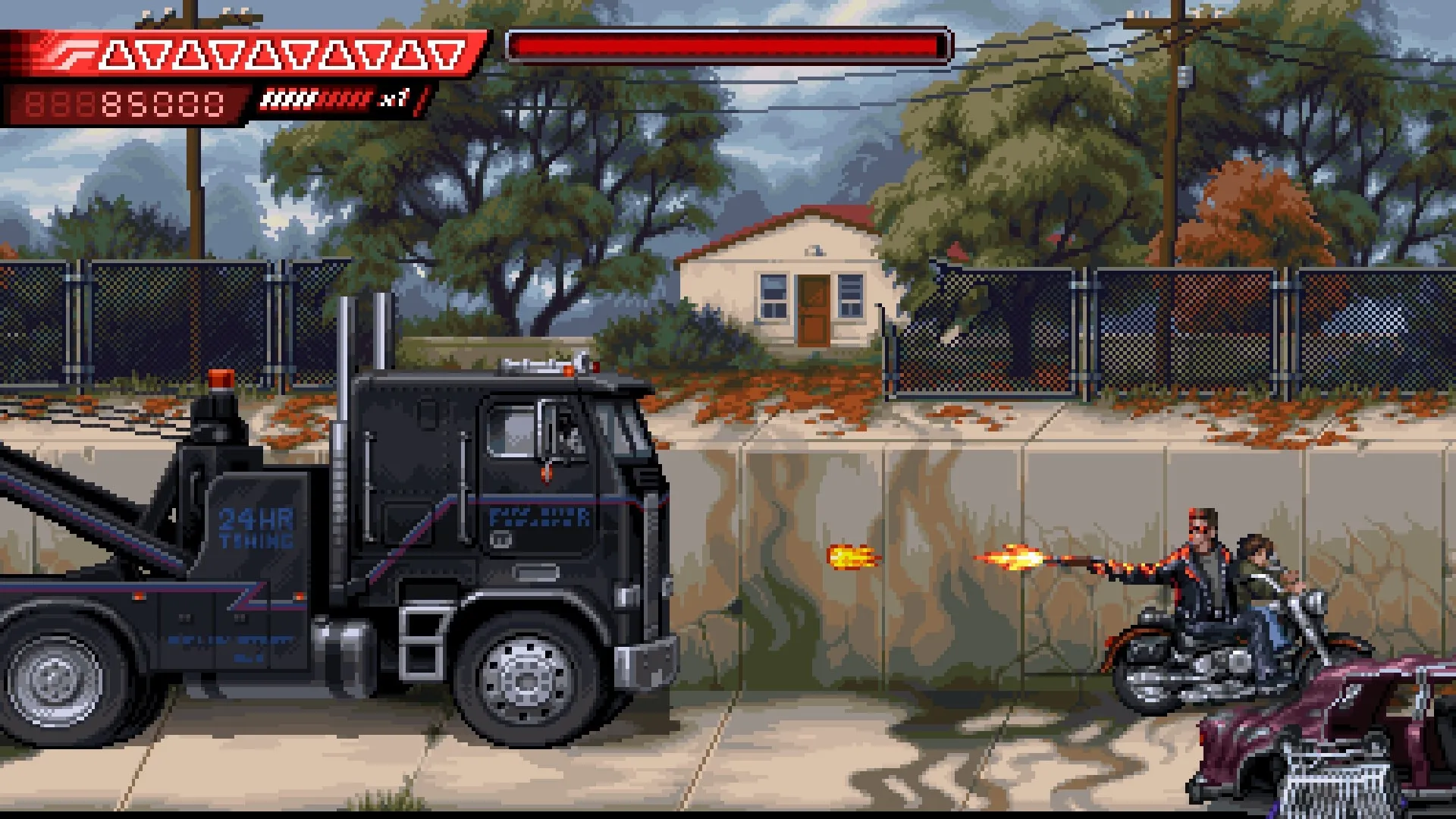 Terminator 2D — это дань уважения преданным фанатам серии. Прокатитесь на мотоцикле с T-800, убегая от T-1000, сбегите из лечебницы с Сарой Коннор и возглавьте сопротивление в роли Джона. Проживите каждый эпизод этой многогранной истории, которая продолжает оставаться актуальной. Непревзойденная пиксельная графика и запоминающийся саундтрек создадут атмосферу ностальгии, словно вы снова вернулись к любимым VHS-кассетам.