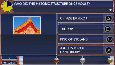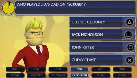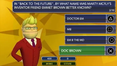 * Достаточно одной консоли! Режим Pass Around рассчитан на участие нескольких человек, но при этом требуется лишь одна Sony PSP. Ее нужно передавать друг другу, причем вы можете тактически рассчитывать, кому предложить ответить на тот или иной вопрос.