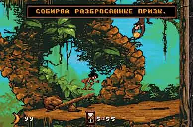 Книга Киплинга и великий мультфильм Уолта Диснея стали прародителями прекрасной игры, реализованной почти на всех типах приставок. На каждой, конечно, по-своему, в меру технических возможностей. Но так или иначе, мы видим малыша, покинутого родителями, посреди густых и полных диких зверей джунглей в восьми и в шестнадцатибитном форматах. Вместе с ним вам предстоит проделать долгий путь в поисках драгоценных камней и друзей из животного мира.