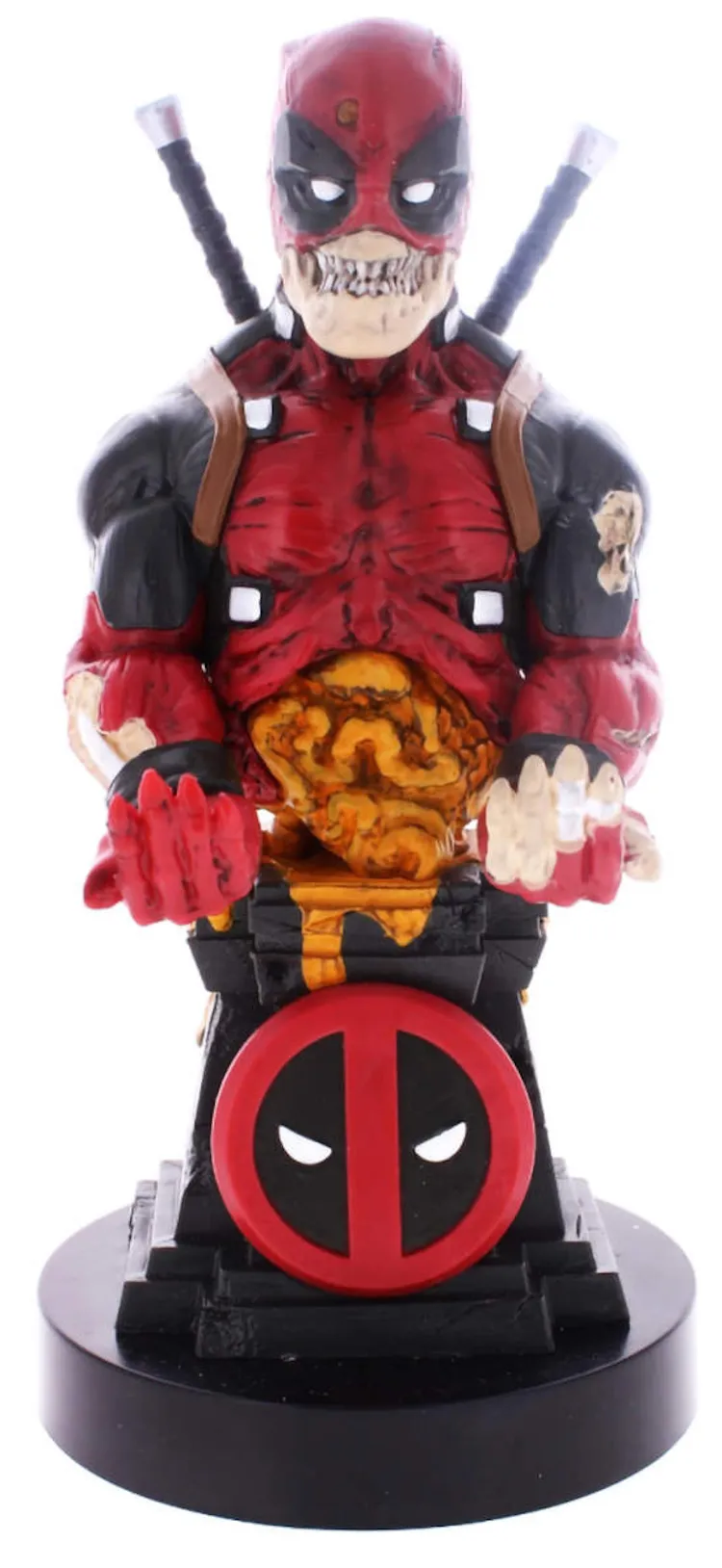 Откройте для себя идеальный аксессуар для вашего игрового уголка с фигуркой-подставкой Cable Guys: Marvel Deadpool Zombie! Эта эксклюзивная версия знаменитого антигероя Дэдпула в облике зомби не только внесет остроту и юмор в вашу коллекцию, но и послужит надежной опорой для вашего геймпада или смартфона.