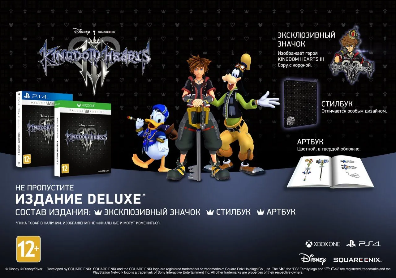 KINGDOM HEARTS III рассказывает историю о приключениях мальчика по имени Сора и его друзей, о борьбе дружбы и света против порождений тьмы. За время путешествия вы посетите множество миров Disney и Pixar и сразитесь с таинственной злой силой, известной как Бессердечные. Объединитесь с Дональдом, Гуфи и множеством других знаменитых персонажей Disney, чтобы преодолеть невероятные испытания и вернуть свет в королевства, охваченные тьмой.