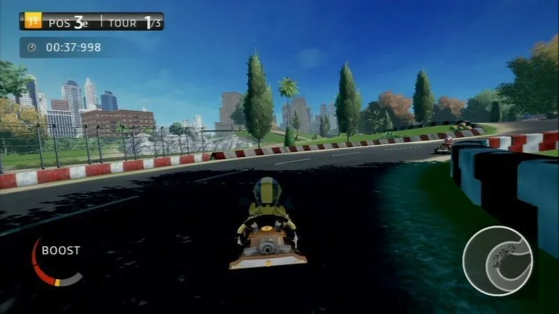 Играть, как на экране телевизора, так и на экране нового контроллера: управляйте своим картом двигаясь к победе с конкурирующими с пятью игроками (четыре разделения экрана на телевизоре + Новый контроллер), или играйте в одиночку в любое время переключаясь между новым контроллером и ТВ!