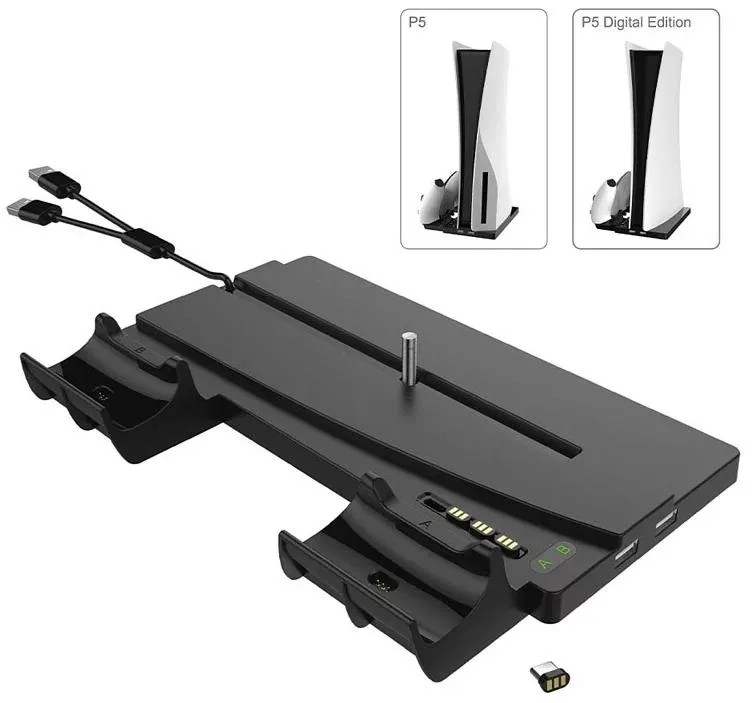 * Служит в роли зарядной станции для 2-х оригинальных контроллеров DualSense (присутствует LED индикатор зарядки геймпадов).