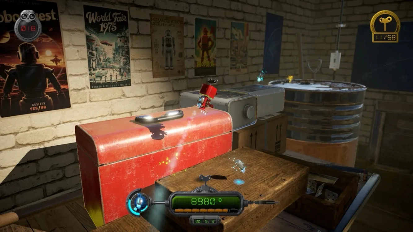 A-RED Walking Robot — это головоломка-платформер, основанная на физических законах, где игроки управляют милым роботом красного цвета в винтажном стиле по имени A-RED. Высотой всего 7 см, A-RED перемещается по сложным окружениям, заполненным опасностями, врагами и головоломками. Способности A-RED развиваются по мере прохождения игры, начиная от базового манипулирования объектами руками и до продвинутых технологий, таких как лазерные пушки, реактивные ранцы и способности, основанные на электричестве. Главная задача — избежать падений, так как падение означает мгновенную смерть и возврат к последней контрольной точке. Игра разработана для вовлечения игроков благодаря геймплею, основанному на физике, сложным головоломкам и развивающимся испытаниям.