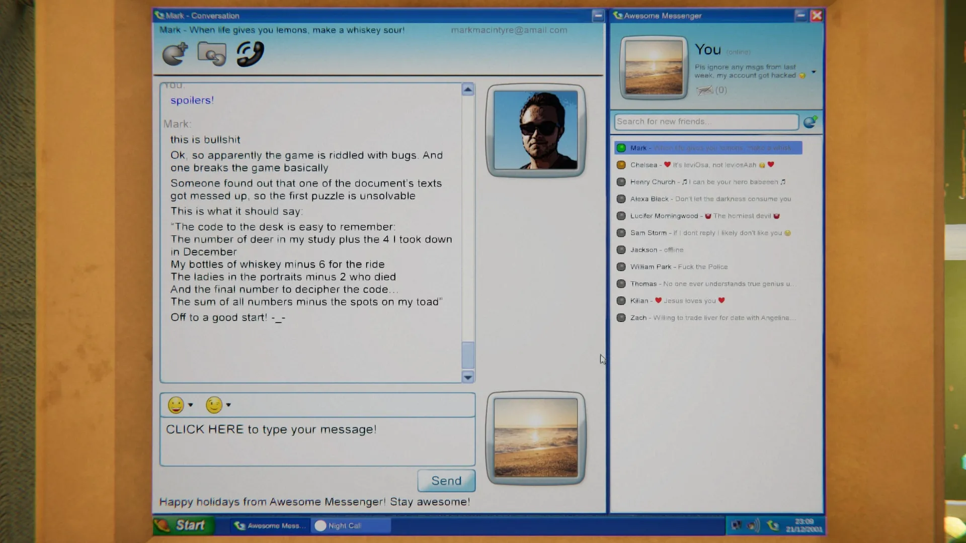 На дворе 2001 год, и ваш друг скинул вам ссылку на загадочную игру, которая оказалась в сети. С первых минут вы чувствуете, что что-то не так. В этой игре скрывается тёмное присутствие, жаждущее свободы.