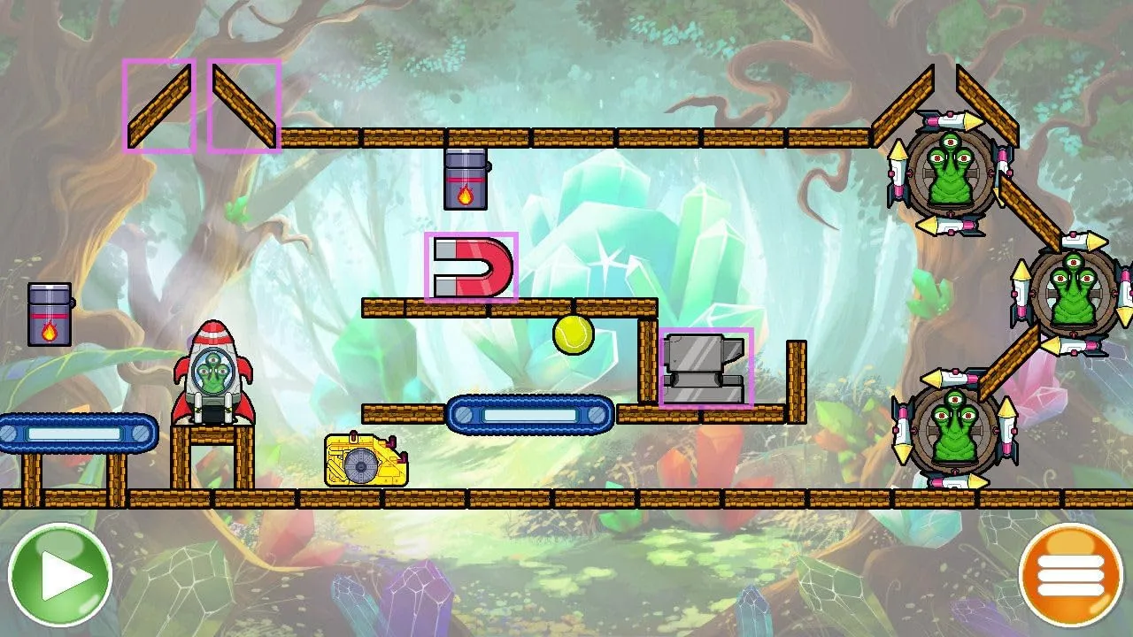 Каждый уровень представляет собой уникальную задачу, где вам предстоит избавиться от всех монстров, используя законы физики и подручные объекты. Эти объекты формируют сложное устройство, которое запускает цепную реакцию, уничтожающую всех врагов. Однако, устройство нуждается в ремонте — некоторые элементы находятся не на своих местах. Ваша задача — восстановить его, перемещая, переворачивая и соединяя различные предметы.