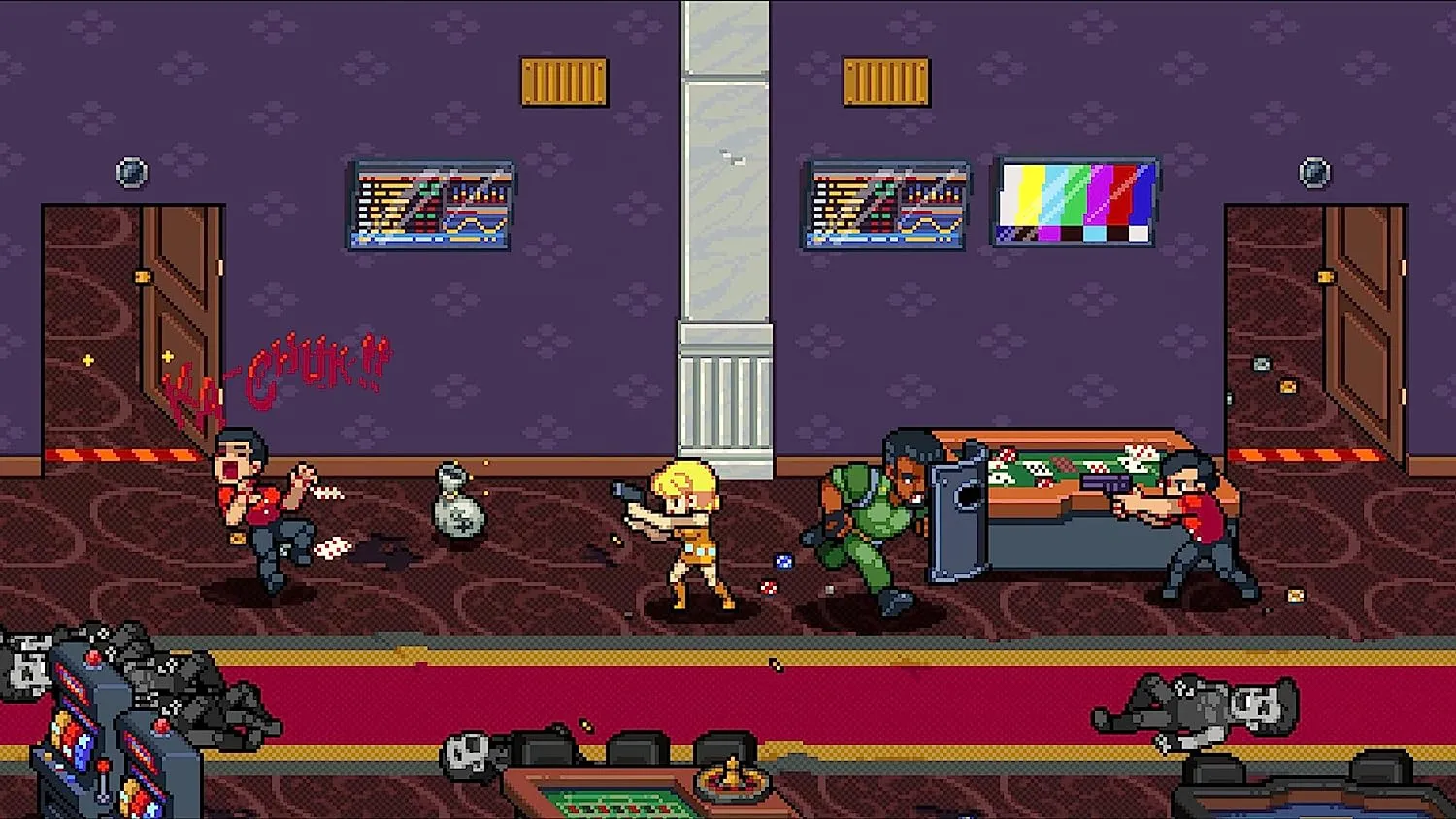 В "Двойном драконе" вас ожидает 13 игровых персонажей. В начале игры вы сможете играть за Джимми, Билли, Мэриан и дядю Мартина, а затем, заработав жетоны, разблокировать еще девять персонажей, каждый из которых обладает своим уникальным игровым стилем и сильными сторонами. Составляйте пары с умом, учитывая особенности каждого персонажа.