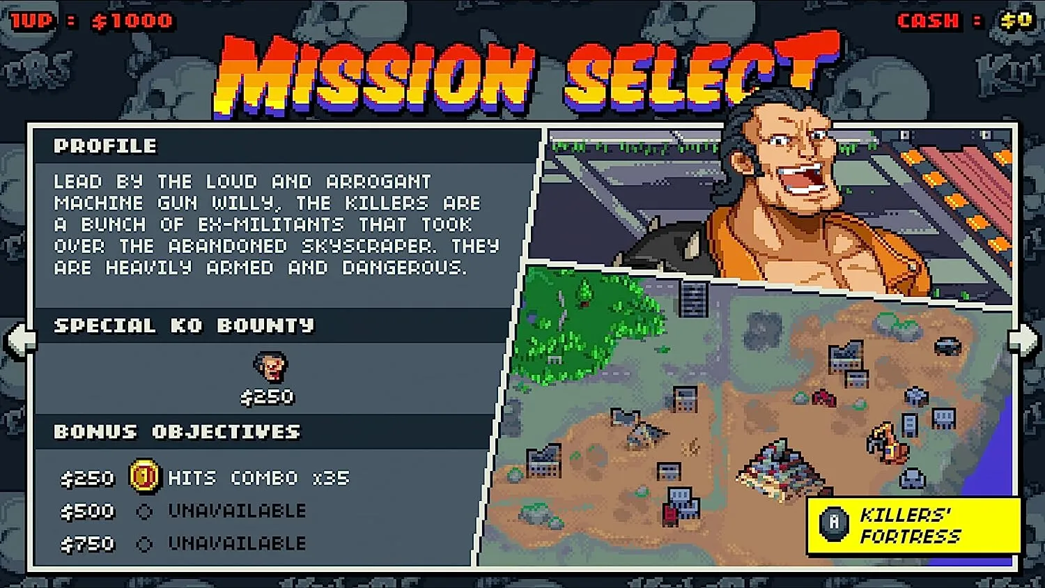 Вас ждут захватывающие драки с элементами роглайта, где динамичный выбор заданий позволяет проходить игру неоднократно. Порядок выбора заданий будет влиять на их продолжительность, количество врагов и сложность. После каждого задания вы сможете приобрести случайно выбранное улучшение для персонажей или сэкономить деньги на воскрешение павших в бою.