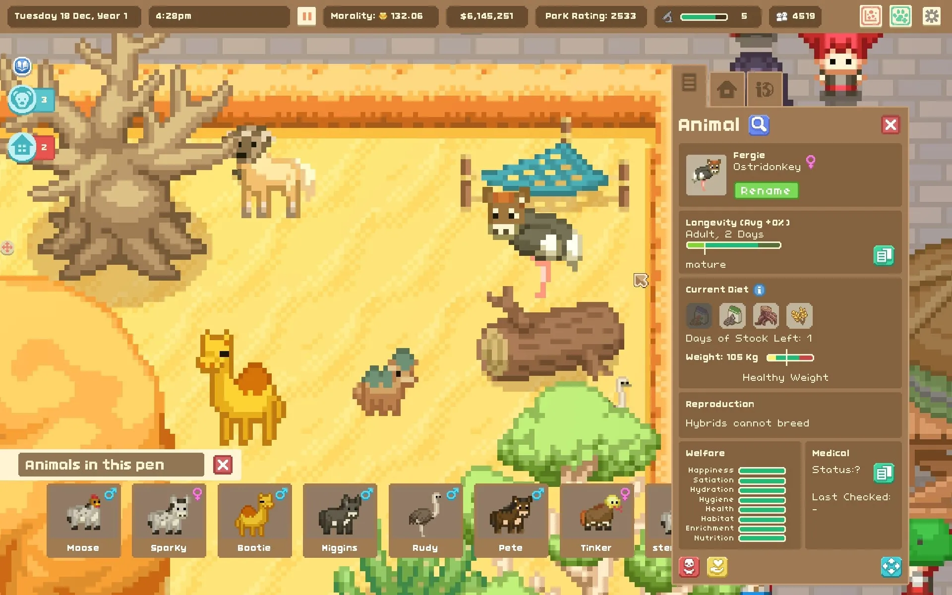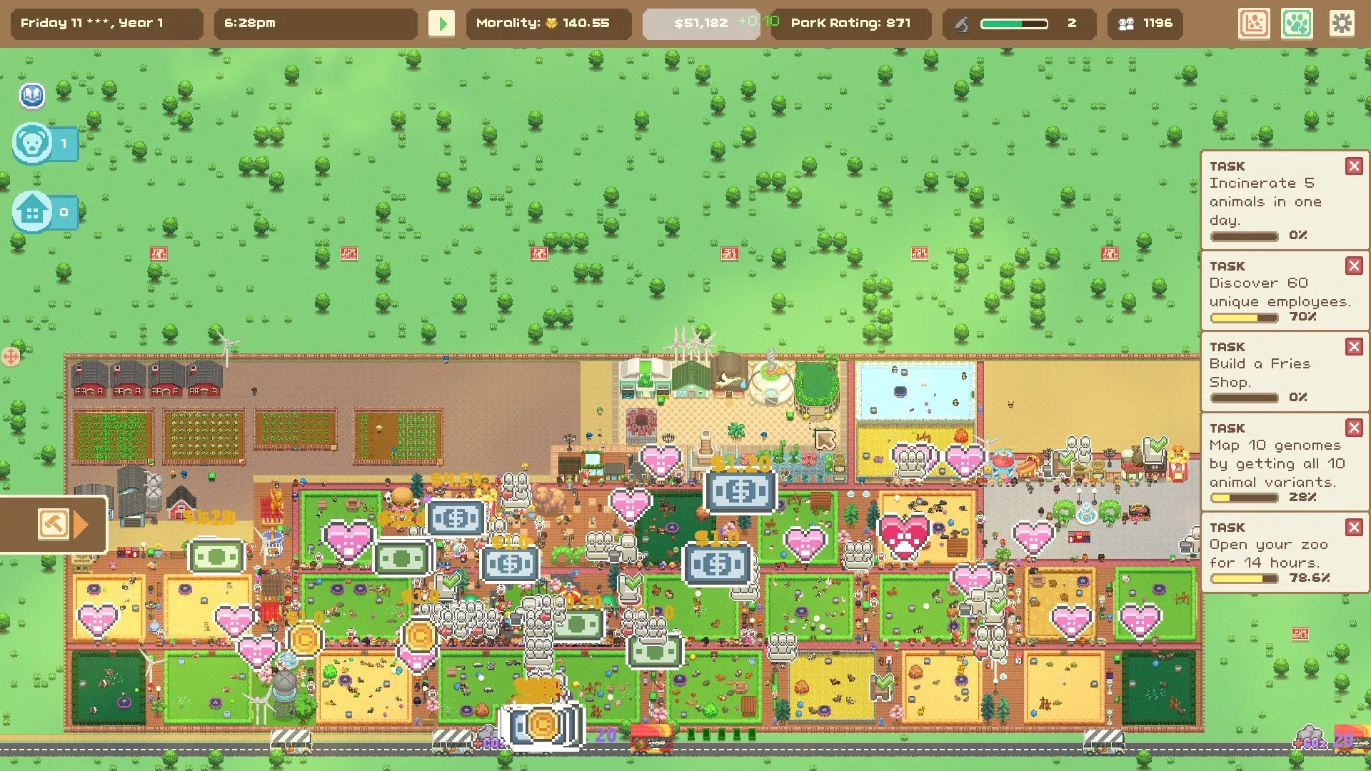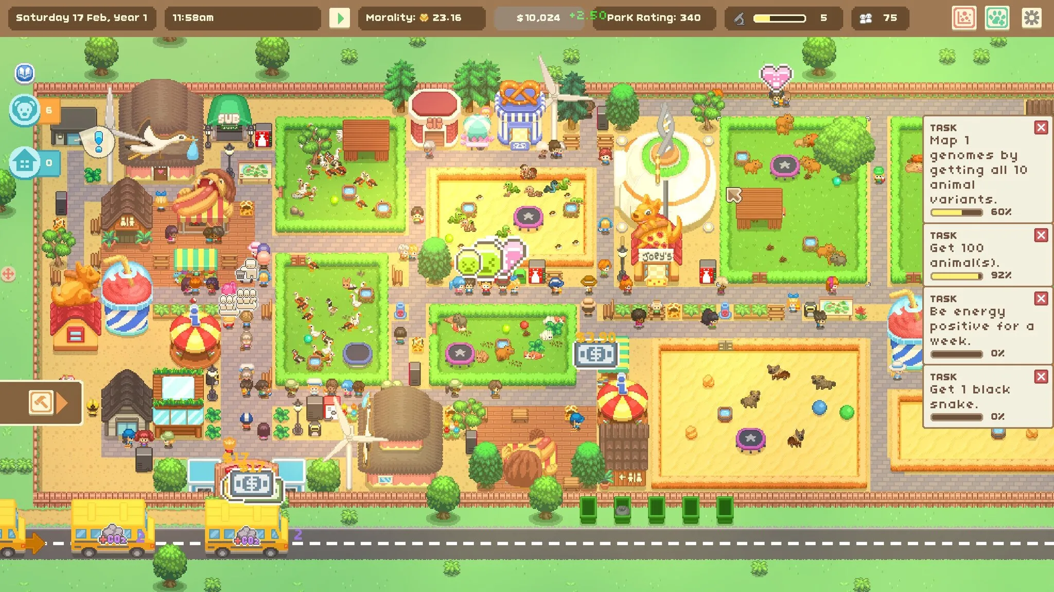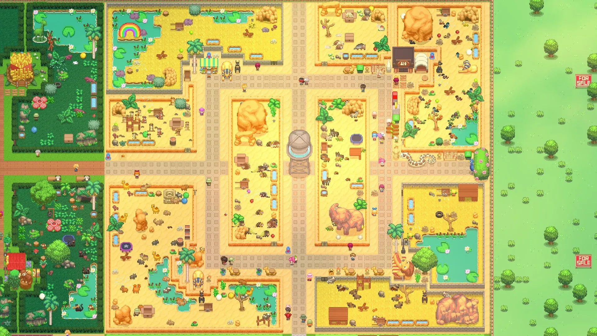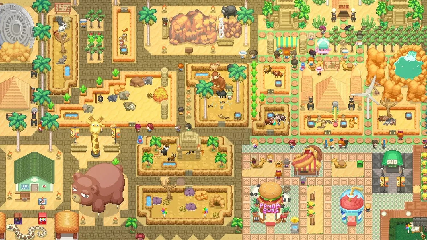 - Возьмите под контроль все аспекты жизни в вашем зоопарке, от рациона животных до удовлетворения потребностей посетителей.