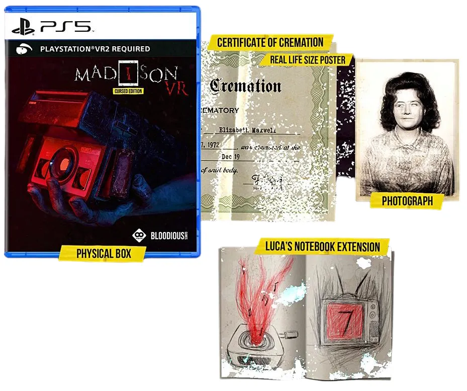 Однако она будет не единственным источником опасности: в MADiSON вас поджидает сразу несколько злых сущностей, а у каждого персонажа имеется своя шокирующая история, непосредственно связанная с основным сюжетом. Используйте моментальный фотоаппарат, чтобы пережить это мучение. Проявите вручную сделанные фотографии и раскройте пугающую правду. Ищите во всех углах, собирайте разные элементы и взаимодействуйте с ними, чтобы выжить среди окружающих вас сущностей. Случайно активируемые события и меняющиеся на протяжении всей игры головоломки обеспечивают высокий уровень реиграбельности, полностью погружая вас в это шокирующее переживание.