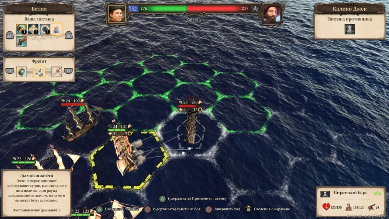 Впервые в истории серии, морские сражения предстанут перед вами в тактическом пошаговом формате. В бою могут участвовать до 10 кораблей, и капитанам предстоит проявить тактическую изобретательность, чтобы вырвать победу даже из самых тяжелых обстоятельств.