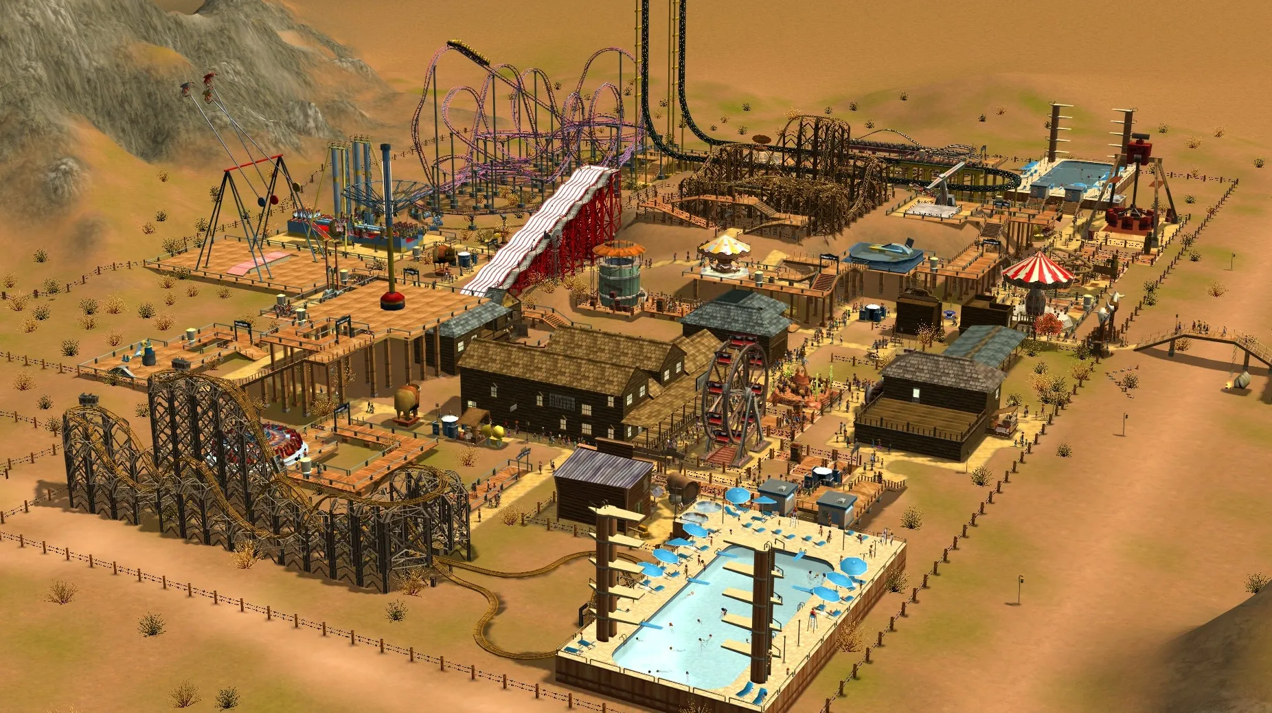 В общей сложности в вашем распоряжении более 300 различных аттракционов, декораций и сооружений. Вы можете создавать невероятные американские горки с помощью продвинутого конструктора, экспериментируя с петлями, виражами и скоростями. Режим песочницы позволяет творить без ограничений, а карьера ставит перед вами сложные задачи по спасению неудачных парков.