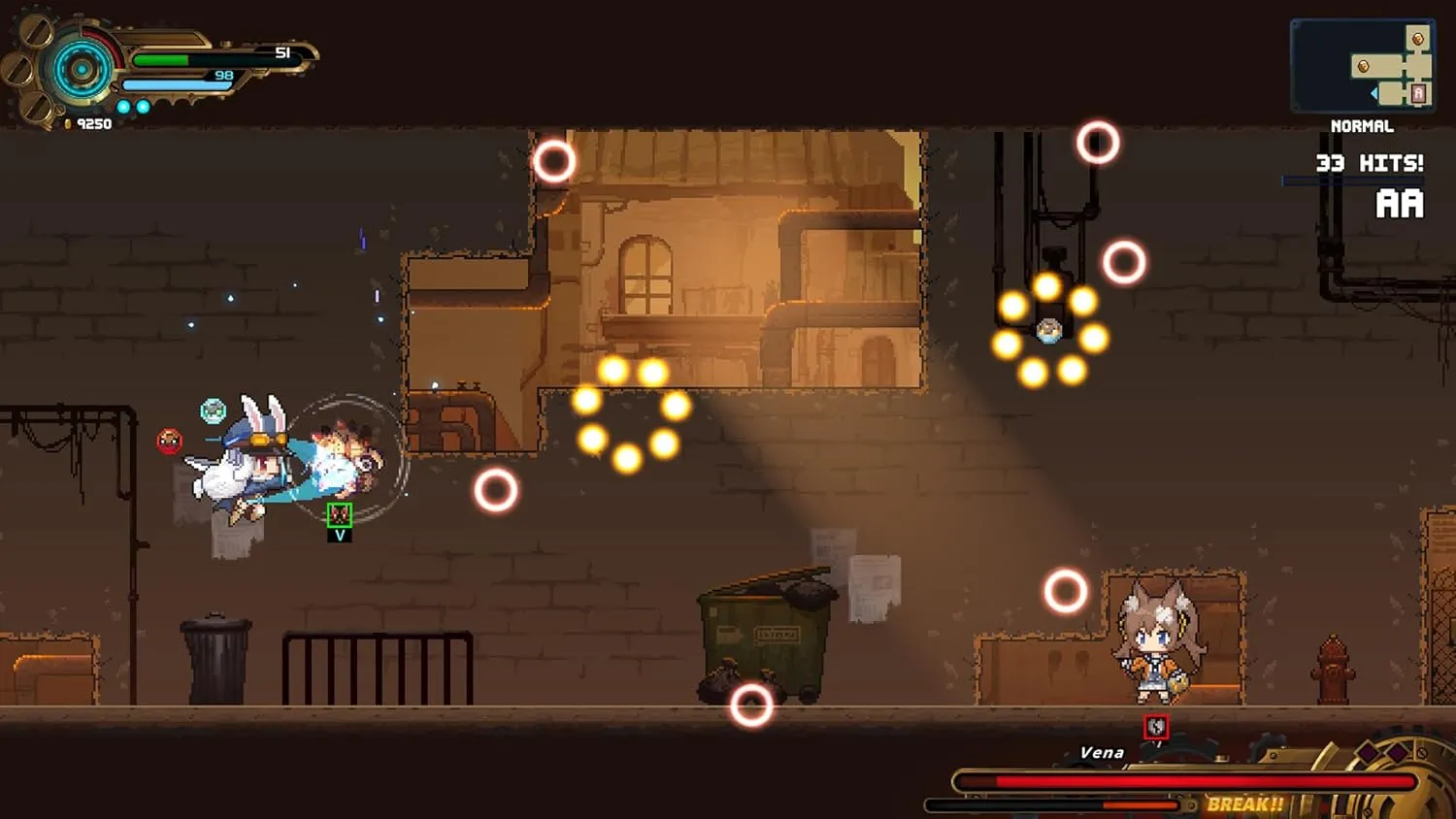 Погрузитесь в захватывающее платформерное приключение с TEVI, где классический 2D экшен получает новое дыхание через уникальное слияние стилей метроидвания и bullet hell. Исследуйте просторный, тщательно проработанный мир, где каждый уголок скрывает тайны и загадки. Заводите новых друзей и противостойте могущественным противникам, от небесных воинов до демонических сил, не забывая про очаровательных персонажей с звериными ушками. Совершенствуйте свой арсенал и приобретайте новые предметы, чтобы расширить свои возможности и стать ещё более мощным героем в этой пиксельной эпопее.