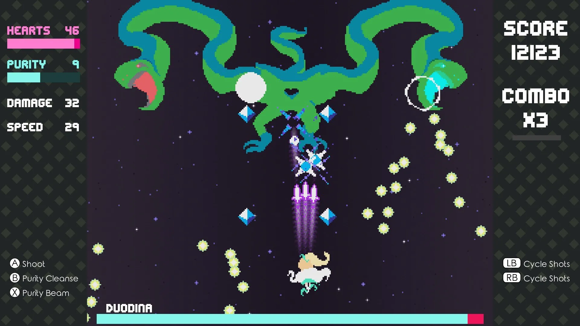 - Пройдите опасный путь и сразитесь с космическими рептилиями в динамичной мини-игре Shoot'em Up.