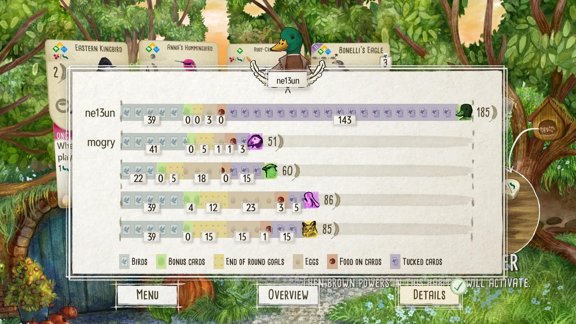 - Разнообразные способы накопления очков с помощью птиц, бонусных карт и целей.