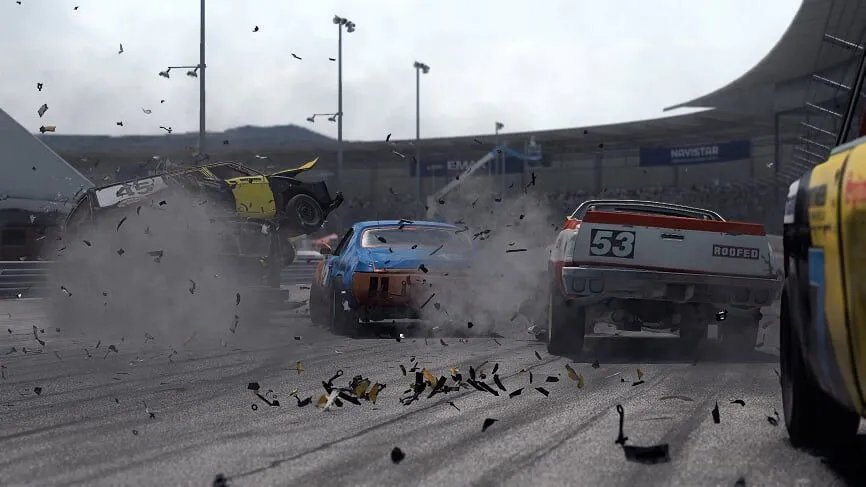 "Забудьте о правилах! Wreckfest - это полный контакт и никакой пощады! Эпические столкновения, нешуточная борьба до самого финиша и миллион способов гнуть и корежить металл - вот что ждет вас в Wreckfest, новой гоночной игре со сверхреалистичной симуляцией физики от легендарного разработчика Bugbear, подарившего миру FlatOut 1 & 2!