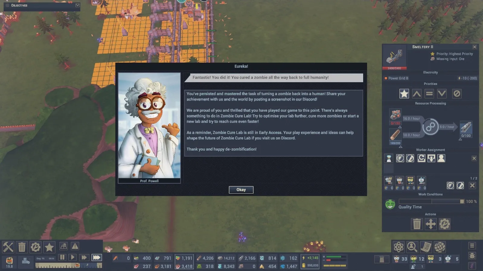 Используйте замораживающие пушки для захвата зомби и лечите их в специализированных помещениях. Создайте сложную экономическую систему, основанную на исследованиях, энергии, ресурсах и производстве. Пройдите четыре технологических уровня, чтобы разработать совершенное лекарство. Откройте более 200 технологий для модернизации вашей лаборатории.