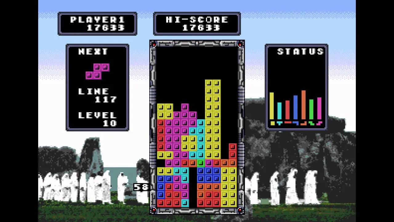 Тетрис по праву считается одной из самых популярных и увлекательных игр за всю историю существования компьютерных игровых систем. Не удивительно, что приставка Sega Super Drive 2 тоже получила адаптированный под себя картридж с этим развлечением. Скорость постепенно нарастает, одновременно учащается пульс. Балки, зигзаги, коробы и «L»-образные блоки неустанно валятся сверху, и Вы должны выбрать оптимальную траекторию для падающих элементов. Фигуры можно вращать и поворачивать более удобной стороной. Чем меньше образуется пустот в вашей конструкции, тем лучше. Сплошная горизонтальная линия во всю ширину игрового поля исчезнет, добавив в копилку определенное количество очков.